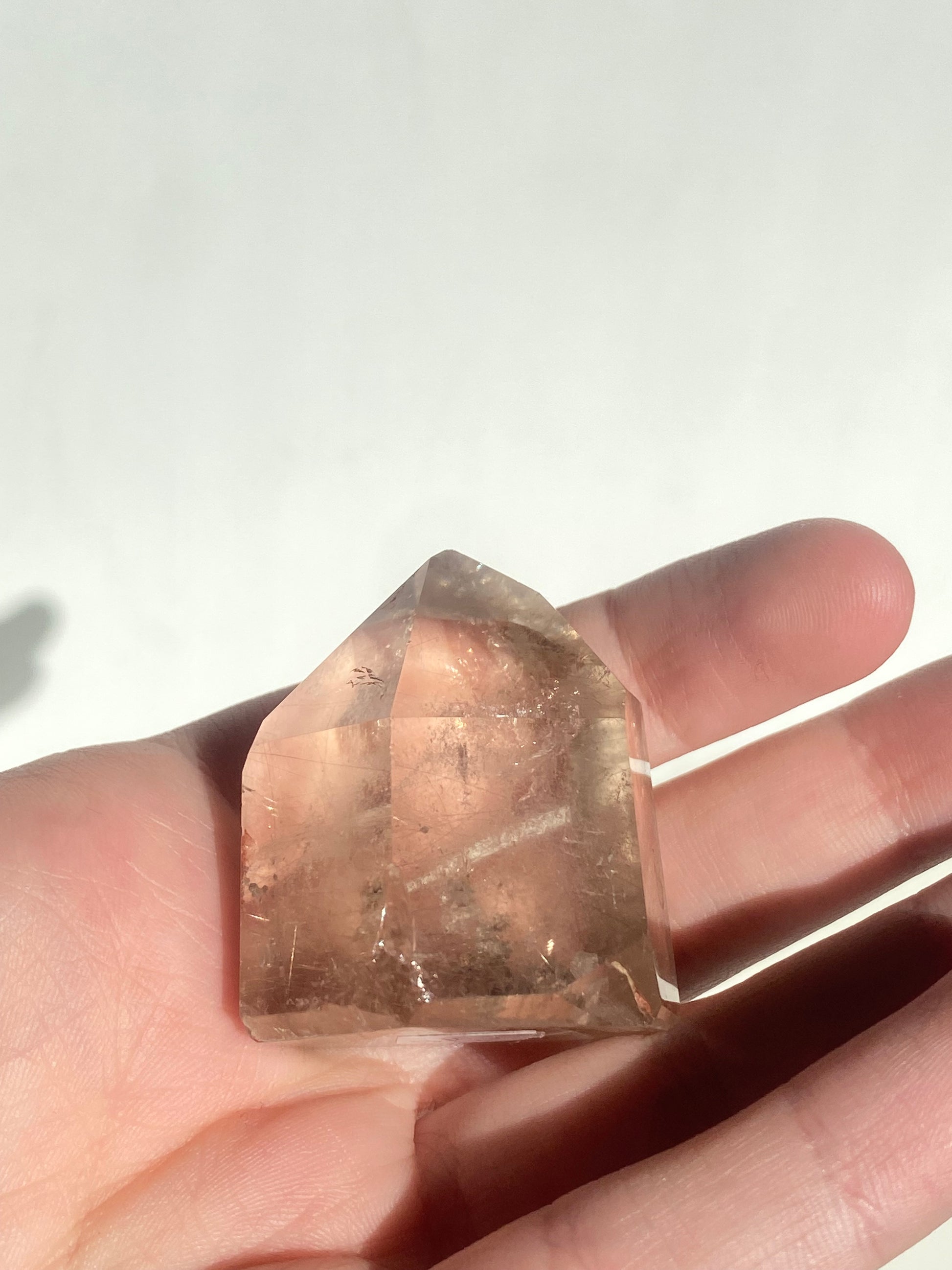 Super high quality clear Quartz, very clear when a few inclusions and rainbows! “Master healer.” It's said to amplify energy by absorbing, storing, releasing, and regulating it.